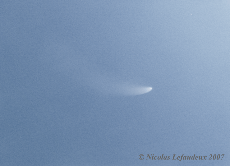Comet McNaught 2007: Comet McNaught was easily visible in daylight in January 2007 with the unaided eye. Capturing it was rather easy then as one just to hide the sun with any building and photograph it.