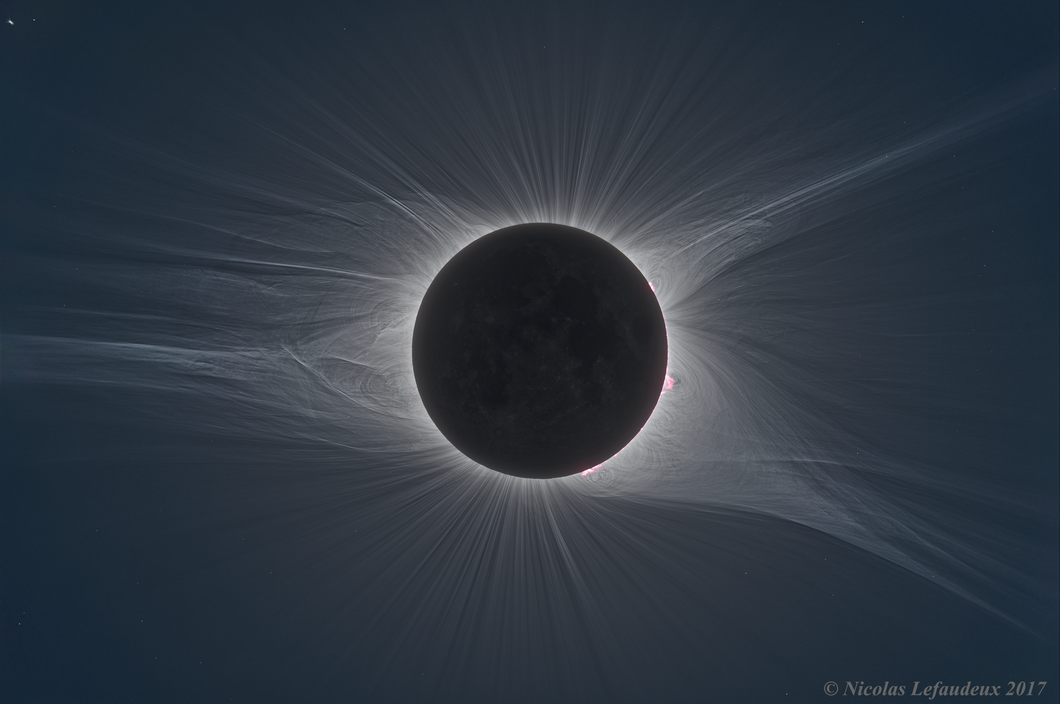 The processing is inspired by the pioneering work of Pr. Druckmuller. I had to write my own code for all the critical steps of processing: sub-pixel image registration on the coronal feature, optimal composition of images to get a seamless HDR composite, and enhancement of the coronal details using adaptive filters. This work represents many hundreds of hours. I thank eclipse chasers Christian Viladrich, Larry Stevens and Jean-Marc Lecleire for sharing some of their eclipse images so that I could work on the image processing before the eclipse happened.