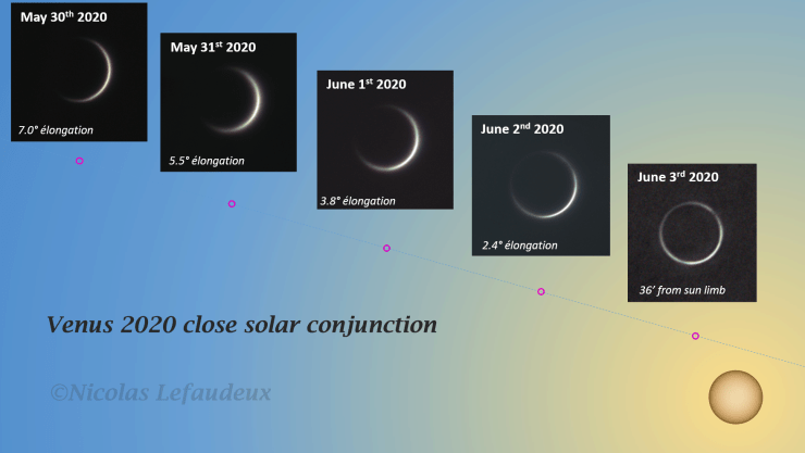 In order to observe the rare “annular phase” of Venus at inferior solar conjunction, when it is located dangerously close to the sun, I implemented a dedicated setup. Read more here on how to tackle with this challenging observation.