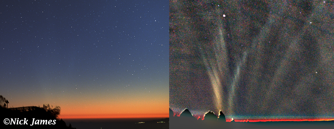 Simulations made before the comet apparition anticipated that the tail of the comet could be detected photographically from the Northern hemisphere between January 18th and 22nd a bit similarly as the tail of comet McNaught 18 years before, though much fainter. Indeed, Nick James travelled to Tenerife and was able to capture photographically the tail of the comet. In France, bad weather prevented me from trying to capture it too.